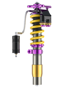 Wilt u de KW V4 Clubsport schroefset, die verkrijgbaar is met een technisch componentenrapport, comfortabeler afstellen voor uw rit op de snelweg naar de Nordschleife of een ander racecircuit, dan kunt u de reboundkrachten eenvoudigweg via de rebound-trapdemping verminderen. Voor de KW V4 Clubsport wordt de gebruikte racetechnologie van de meervoudige overall winnaar van de ADAC Zurich 24h Race Nürburgring nog steeds ondersteund door aluminium unibal top mounts.